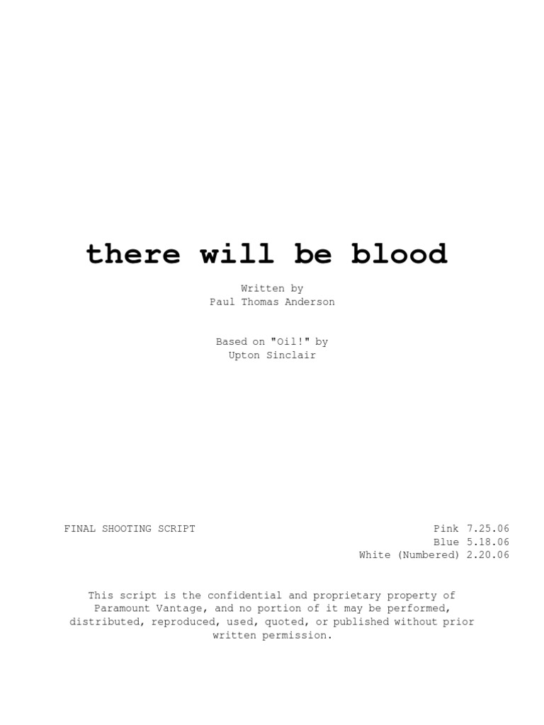 There Will Be Blood Shooting Script Nature